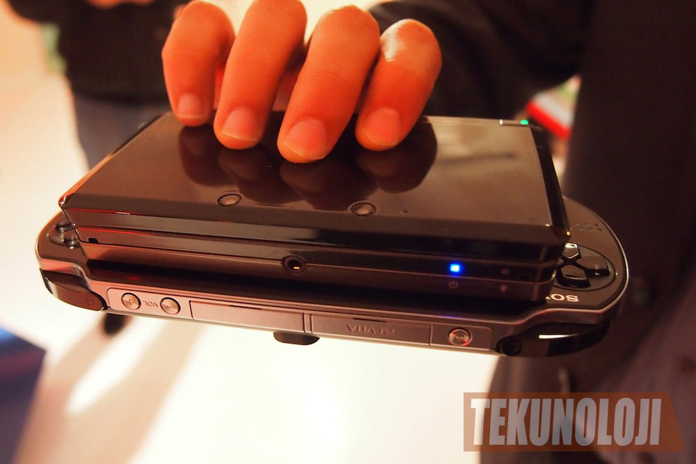^ A Nintendo 3DS stacked on top of the PS Vita.